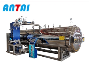 ④殺菌:循環泵將殺菌用水在閉路系統中不斷循環,水形成霧狀噴射到食品表面。罐內壓力通過加壓閥和泄壓閥調整在理想的范圍內。