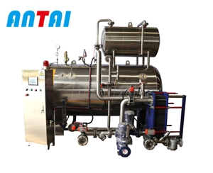 ③升溫:鍋內殺菌水被水被不斷循環,蒸汽通入到換熱器中和殺菌水進行熱量交換,產品溫度不斷升高。