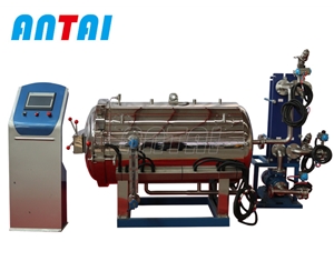 ①將包裝好的產品裝籃送入滅菌釜中,釜門關閉。然后釜門通過三重安全聯鎖保證安全。在整個滅菌過程中,機械、電氣等方式連鎖,保證殺菌鍋安全運行。