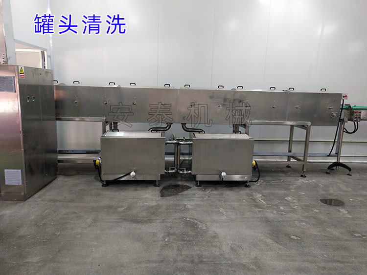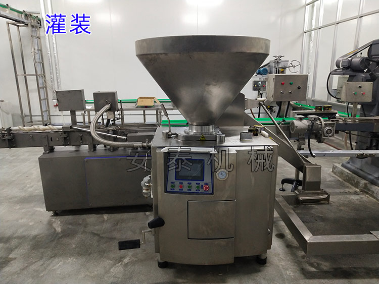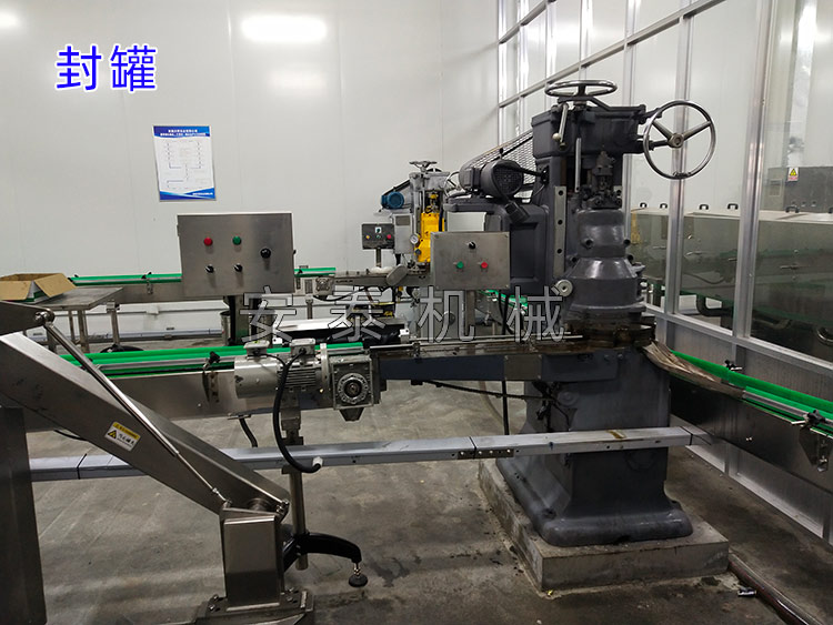 午餐肉罐頭生產(chǎn)工藝 原料處理-切塊-腌制—絞碎—斬拌—真空攪拌—空罐卸垛—空罐清洗—灌裝-封罐-裝籠-殺菌—卸籠—罐頭清洗—吹干—噴碼—罐頭碼垛-罐頭卸垛—開箱—裝箱—封箱—碼垛。(可根據(jù)產(chǎn)量定制大小型生產(chǎn)線)
