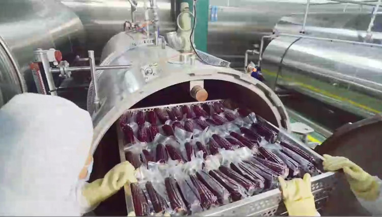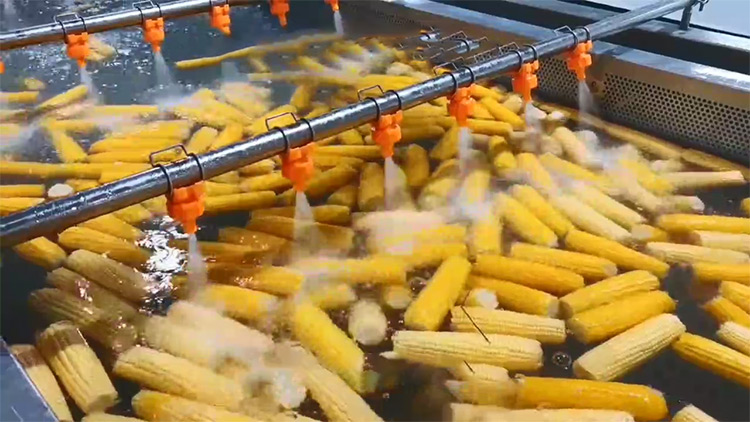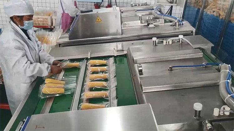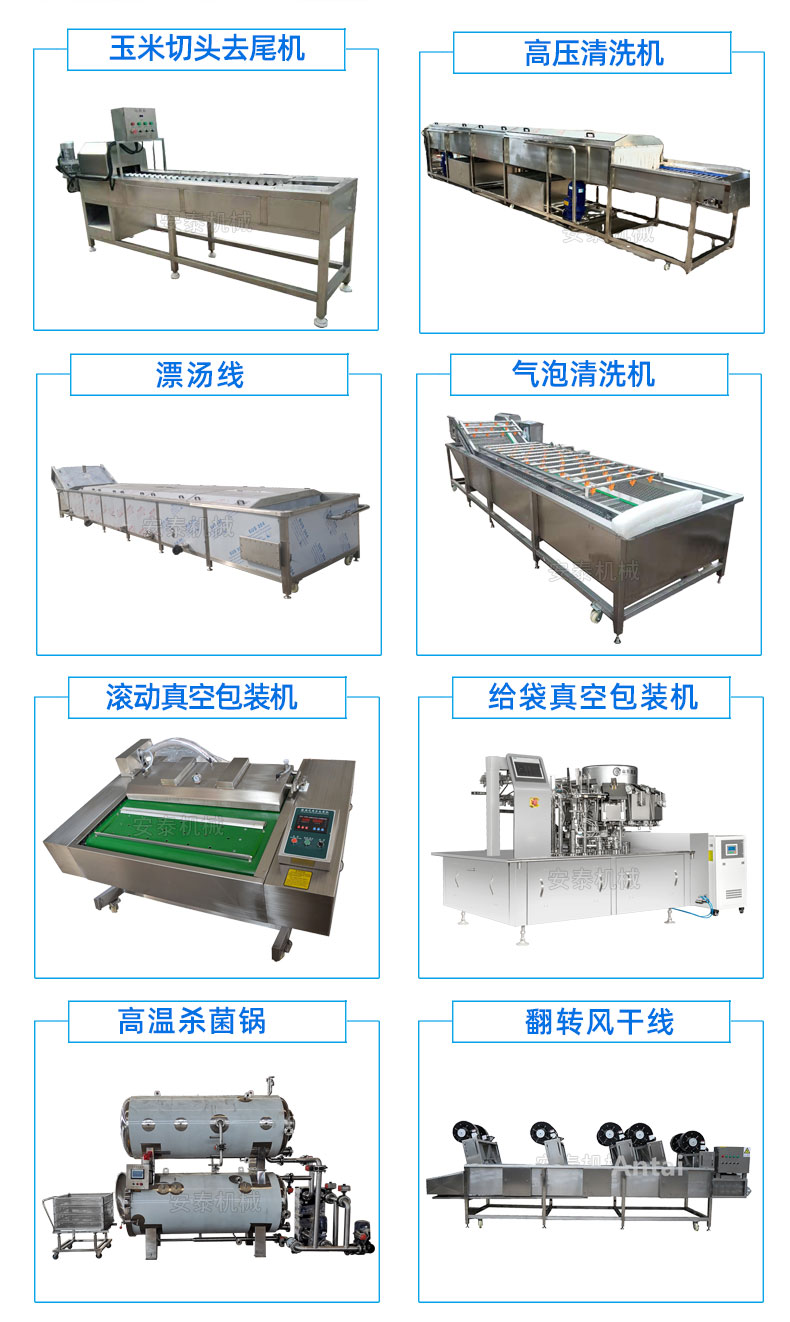 鮮食玉米加工基本流程:扒皮、切頭去尾、高壓清洗、漂湯殺青、清洗冷卻、風干、真空包裝、高溫殺菌、風干、裝箱等。